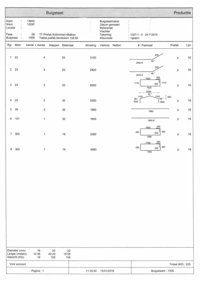 Aan de hand van aangeleverde wapeningstekeningen vervaardigen wij de buigstaten en berekenen de eventueel benodigde dekkingsmaterialen.